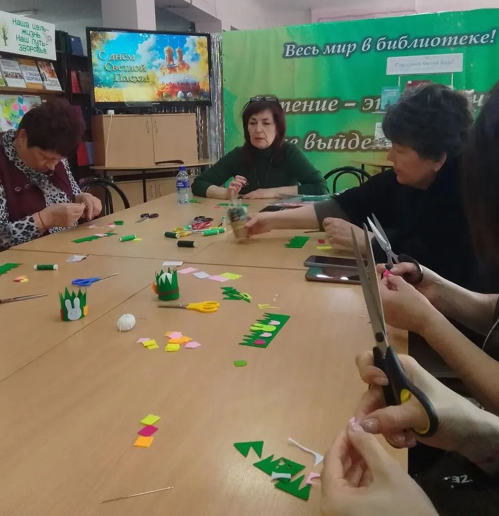 9 апреля ведущий библиотекарь отдела обслуживания МРБУК «СМЦБ» Ю. С. Григоренко в рамках социально-досугового клуба «Настроение» состоялось лабораторное творчество «Пасхальный подарок».
