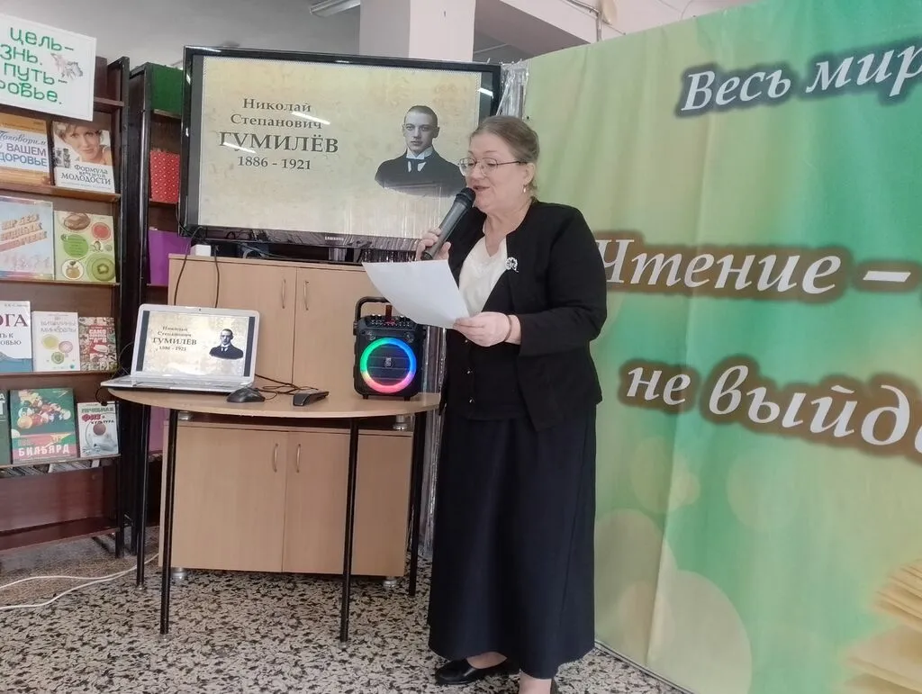 11 апреля в читальном зале Сальской межпоселенческой центральной библиотеки в рамках литературно-музыкального клуба «Вдохновение» имени И. Г. Момота состоялся поэтический вечер-портрет «Муза странствий Николая Гумилева».
